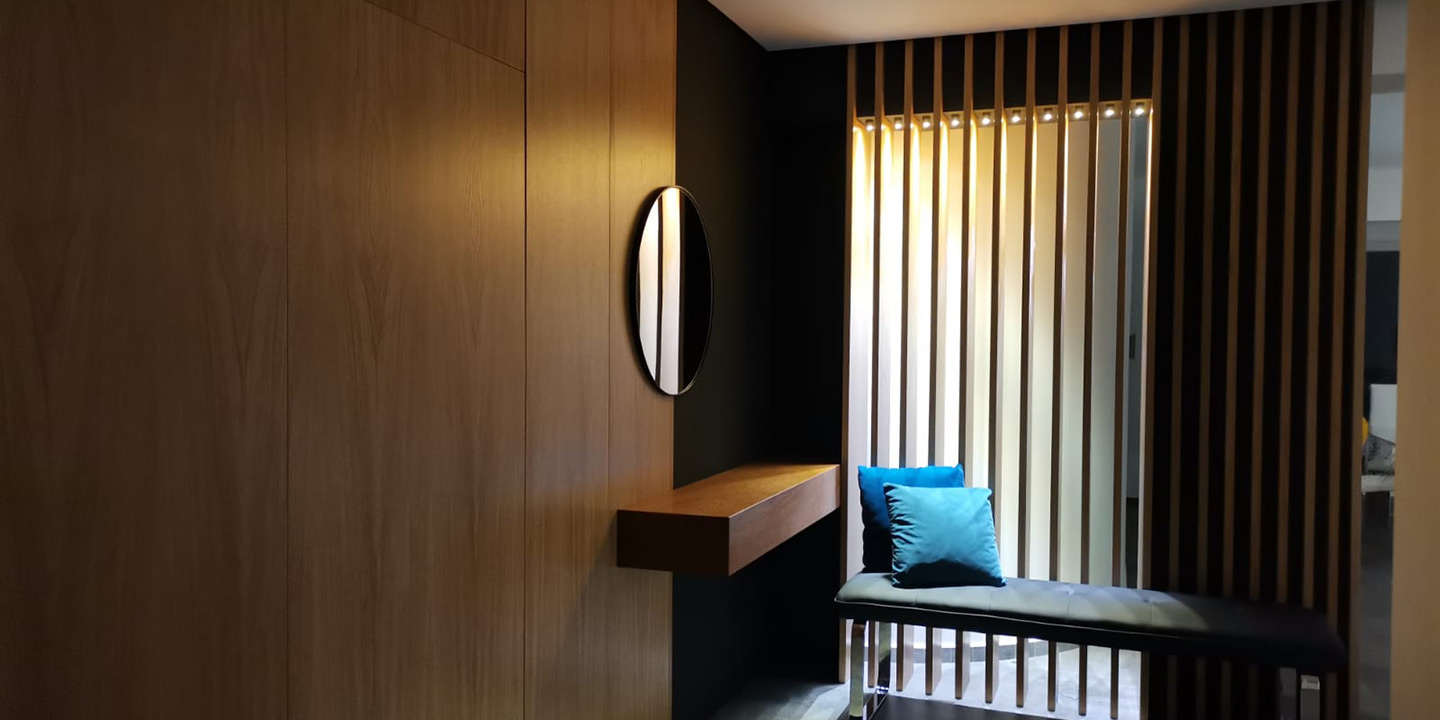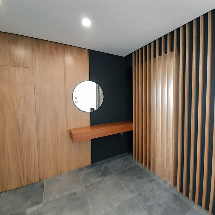 I listelli in legno vengono utilizzati sia come elemento decorativo delle pareti, sia come elemento divisorio realizzando un sofisticato sistema per separare in maniera delicata gli ambienti, in particolare il loro utilizzo è adatto per le zone di ingresso in appartamenti configurati come open space.